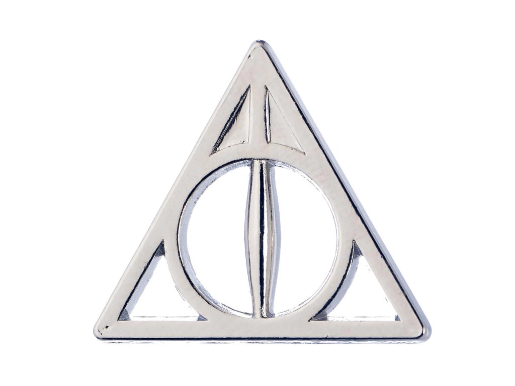 Bazový prútik v origináli je označovaný ako Elder Wand. Magický a pradávny predmet, čarovná palička, ktorá robí z toho, kto ju používa, nepremožiteľného kúzelníka(palička vytvorená z bazového dreva).V symbole je predstavovaná vo vertikále. Kameň vzkriesenia v origináli je označovaný ako "resurrection stone". Tento kameň dokáže podľa príbehu navracať mŕtvych ľudí späť do sveta živých. Moc tohto kameňa spočíva v tom, že privedie mŕtveho späť na tento svet v tejto prízračnej podobe, v ktorej sem už nepatrí. V symbole je táto relikvia predstavovaná kruhom vnútri trojuholníka, nakresleným cez zvislú čiaru. Neviditeľný plášť v origináli je označovaný ako Cloak of invisibility.
