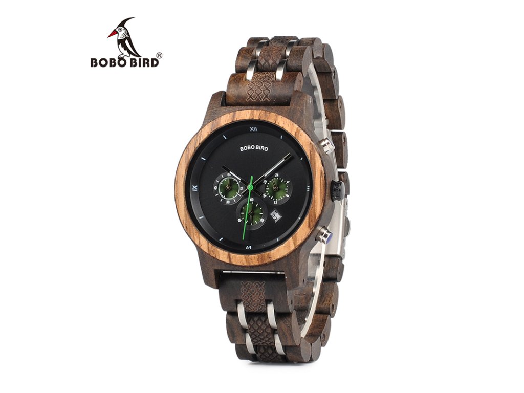 Drevené náramkové hodinky BOBO BIRD sú jedinečným darčekom. Dokonalá kombinácia dreva a kovu. Tieto hodinky, okúzľujúce svojou jedinečnou krásou, sú skutočne predmetom obdivu. Vznešená kombinácia dreva a nerezovej ocele má za následok šperk, ktorý prekonáva očakávania. Jeho harmonický dizajn s náramkom, v ktorom sa snúbi drevo a nerezová oceľ, ciferníkom s chronografom a jemnosťou rímskych číslic na lunete, uchvacuje krásou, ktorá sa vymyká všednosti.
